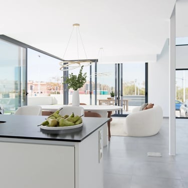 Discover our exclusive collection of luxury villas in Gran Alacant, where contemporary architecture meets Mediterranean comfort. Among them is Villa Miró, an exceptional detached home designed to elevate modern living. Its spacious, light-filled interior is defined by large panoramic windows that bring in abundant natural light and capture the essence of the Mediterranean lifestyle.