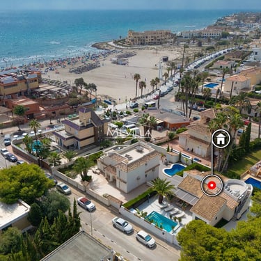 Discover this exceptional Ibiza-style villa, recently renovated and located in one of the most coveted areas of La Zenia, just 100 meters from the sea. A truly unique property that blends luxury, privacy, and an unmistakable Mediterranean atmosphere.