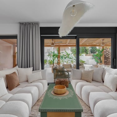This stunning Ibiza-style villa comes fully furnished and equipped, ready to enjoy from day one. Its architecture blends contemporary elegance with soft Mediterranean lines, creating a bright, open, and welcoming living environment.