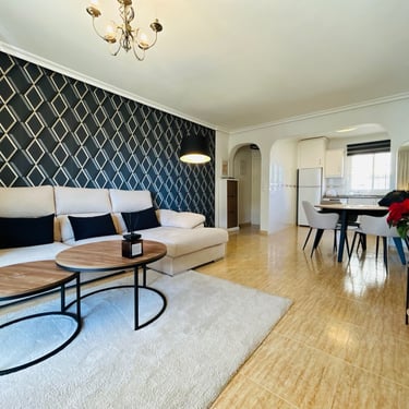 This charming apartment is in excellent condition and has been beautifully and tastefully decorated, ready to move in. It features 2 bright bedrooms, 1 spacious bathroom, and a welcoming open-plan living and kitchen area. A private, south-facing terrace invites you to relax outdoors, enjoy a morning coffee, or unwind in the evening sun. With a built area of 70 m² and usable space of 62 m², it offers comfortable and practical living in one of Orihuela Costa’s most vibrant areas.