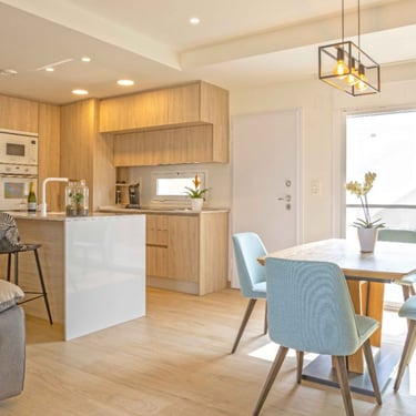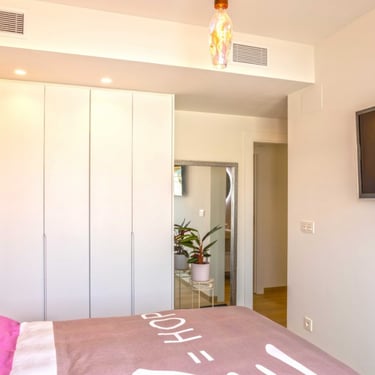 The penthouse offers 79 m² of built living space, designed in an open-plan layout that maximizes comfort and functionality. Large double-glazed windows flood the interior with natural light, creating a bright and inviting atmosphere throughout the day.